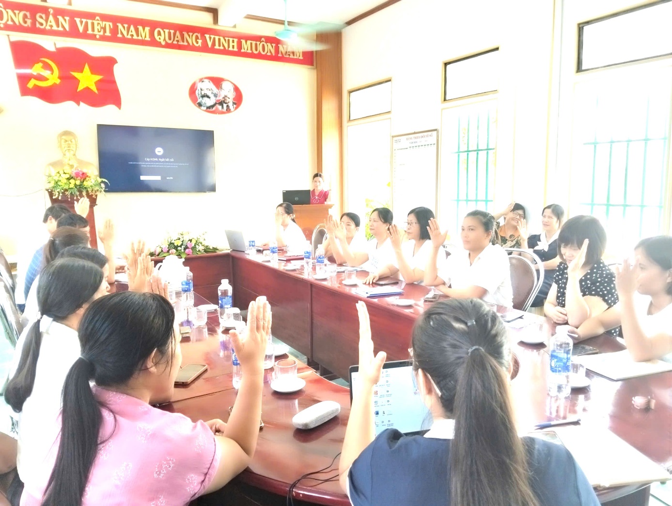 Hội nghị cũng đã dành thời gian để thảo luận, đóng góp ý kiến xây dựng các quy chế làm việc, quy chế chi tiêu nội bộ, quy chế dân chủ cơ sở và các tiêu chí thi đua năm học 2025 – 2026. Các ý kiến đều thể hiện tinh thần trách nhiệm, cầu thị và mong muốn phát triển nhà trường ngày càng vững mạnh.