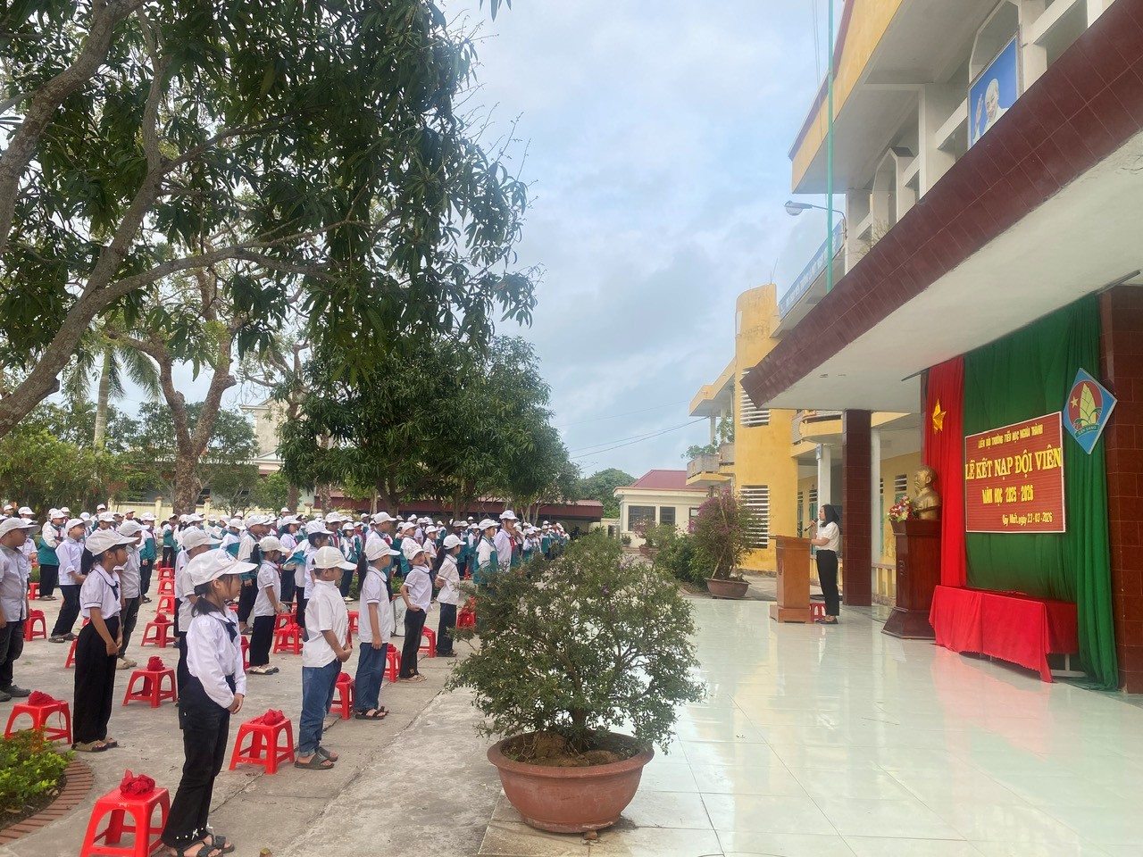 Trong giây phút trang nghiêm và đầy xúc động, những chiếc khăn quàng đỏ thắm đã được trân trọng trao lên vai các em, đánh dấu bước ngoặt ý nghĩa trên hành trình trưởng thành và rèn luyện.