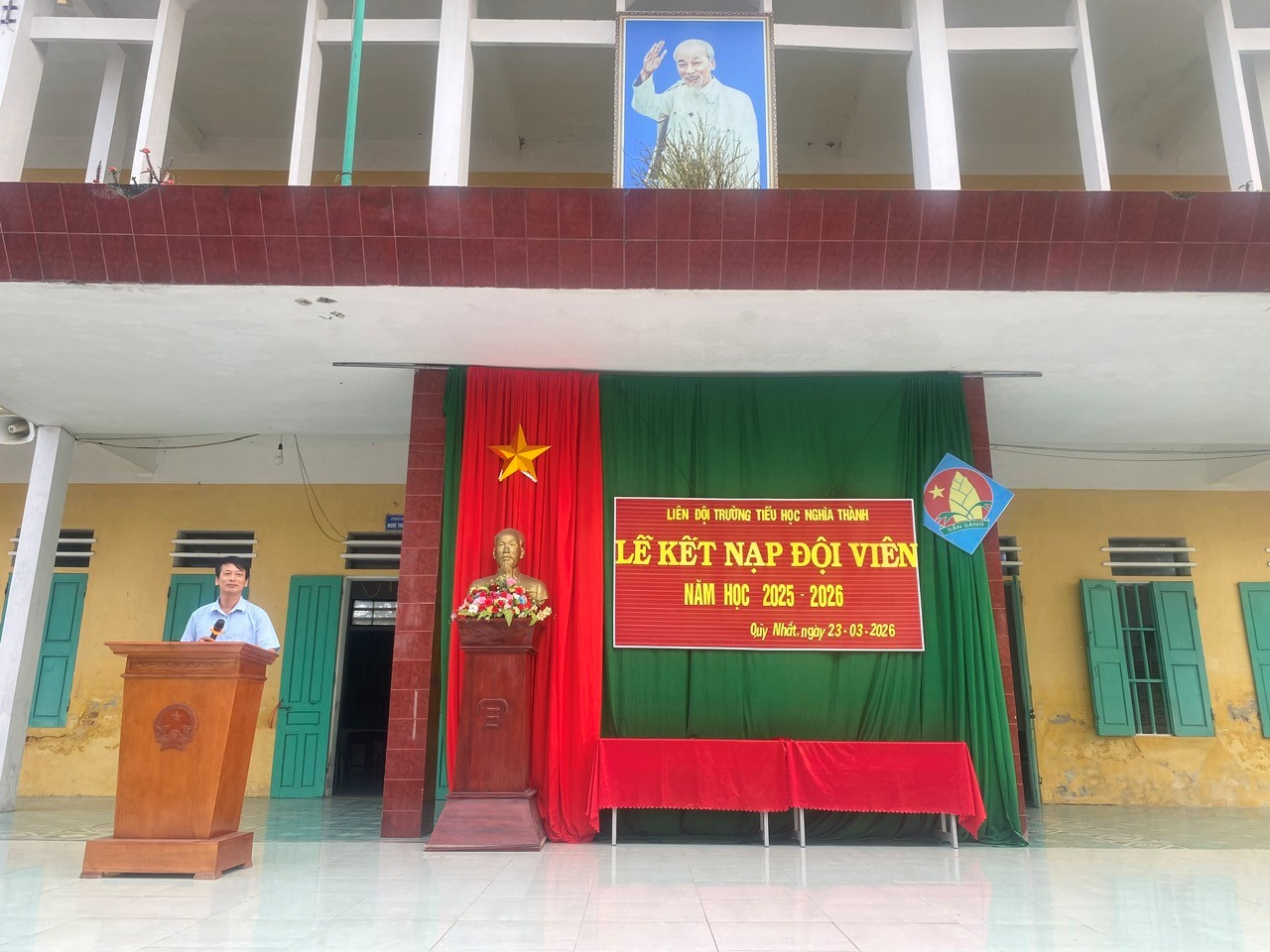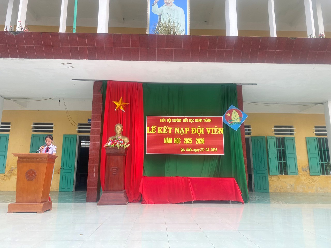 Đối với mỗi học sinh, đặc biệt là các em nhi đồng, được đứng vào hàng ngũ của Đội TNTP Hồ Chí Minh là một niềm vinh dự lớn lao, là dấu mốc đánh dấu sự trưởng thành trong học tập và rèn luyện. Trong không khí thi đua sôi nổi của thiếu nhi cả nước hướng tới những ngày lễ lớn, sáng ngày 23/3/2026, Liên đội Trường Tiểu học Nghĩa Thành đã long trọng tổ chức Lễ kết nạp Đội viên mới cho các em học sinh tiêu biểu khối lớp 3. buổi lễ vinh dự được đón tiếp thầy Võ Xuân Lương – Bí thư chi bộ, Hiệu trưởng nhà trường, cô Trần Thị Tố Nga – Phó Hiệu trưởng cùng toàn thể các thầy cô giáo và các em học sinh trong Liên đội về tham dự. Đây là nguồn động viên to lớn, góp phần làm nên thành công của buổi lễ.