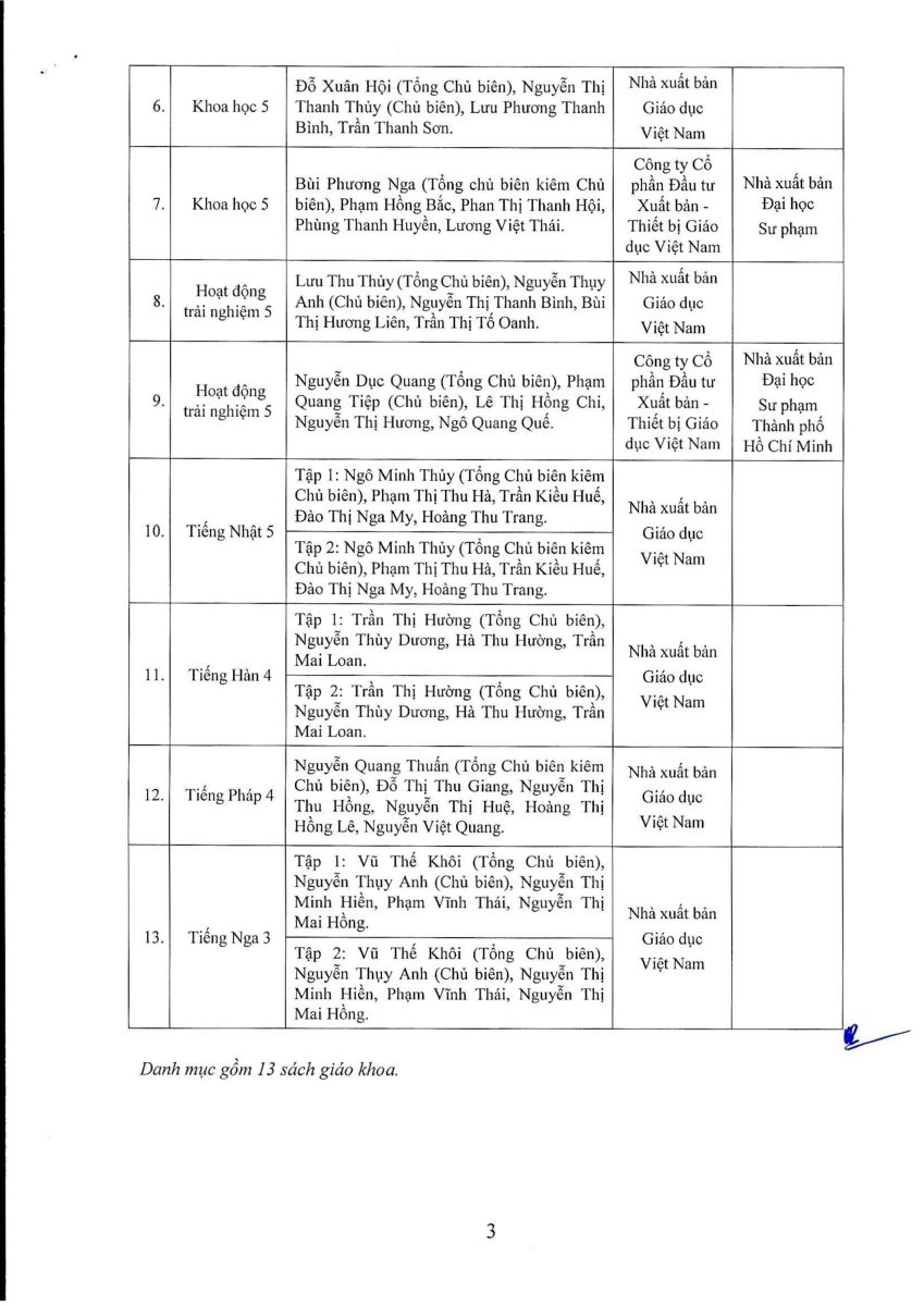 Quyết định phê duyệt sách giáo khoa các môn học, hoạt động giáo dục lớp 5 và sách giáo khoa các môn Ngoại ngữ 1 sử dụng trong cơ sở giáo dục phổ thông