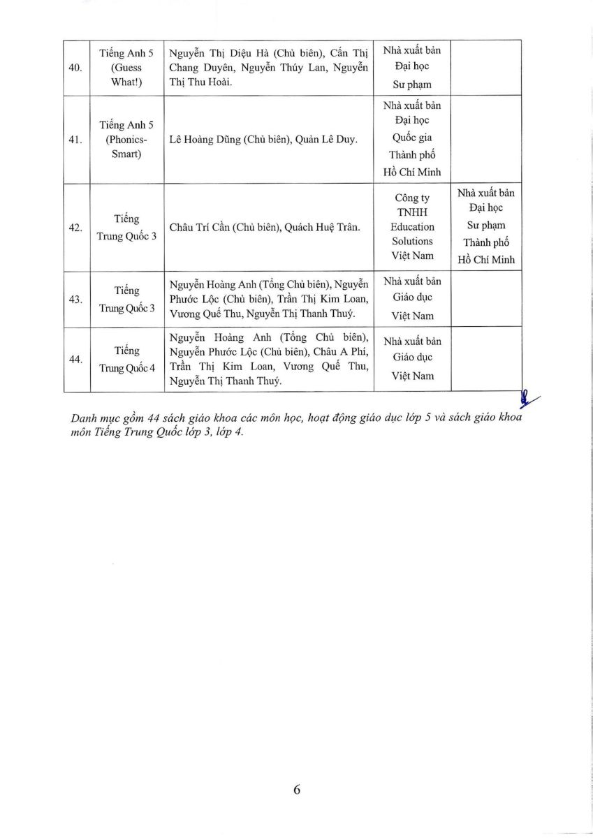 Quyết định phê duyệt sách giáo khoa các môn học, hoạt động giáo dục lớp 5 và sách giáo khoa môn Tiếng Trung Quốc lớp 3, lớp 4 sử dụng trong cơ sở giáo dục phổ thông